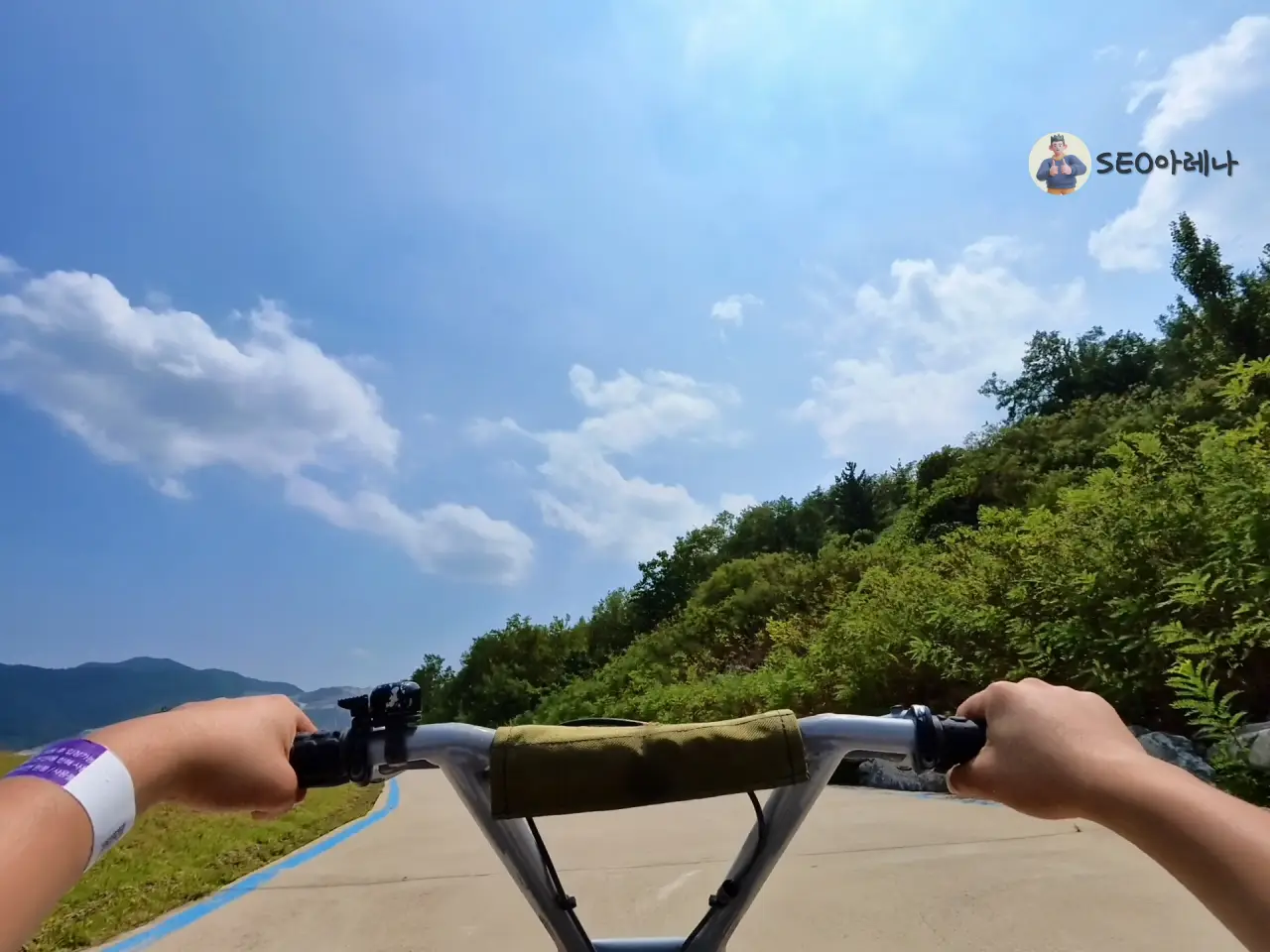 루지 길이가 1.5km 구간이라 15~20분 정도 탈 수 있어서 좋았어요. 중간에 세워놓고 사진도 찍을 수 있는 오프로드 도로여서 만족스러웠습니다.