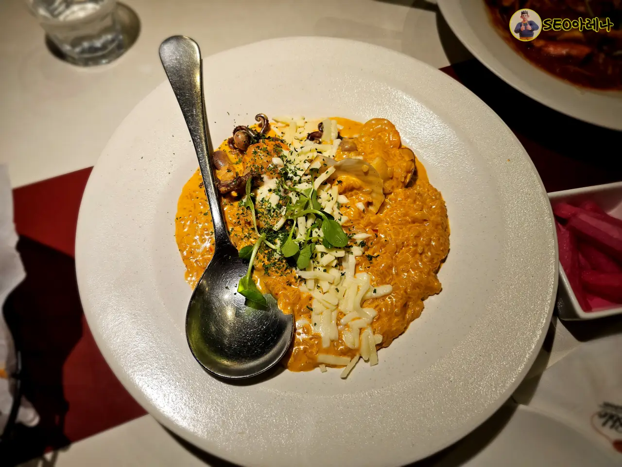디에이블 리조또는 치즈 양이 적당해서 느끼하지 않게 끝까지 맛있게 먹을 수 있었어요. 저는 개인적으로 치즈는 별로 좋아하지 않아서 좀 걷어내고 먹긴 했습니다 ㅎㅎ;