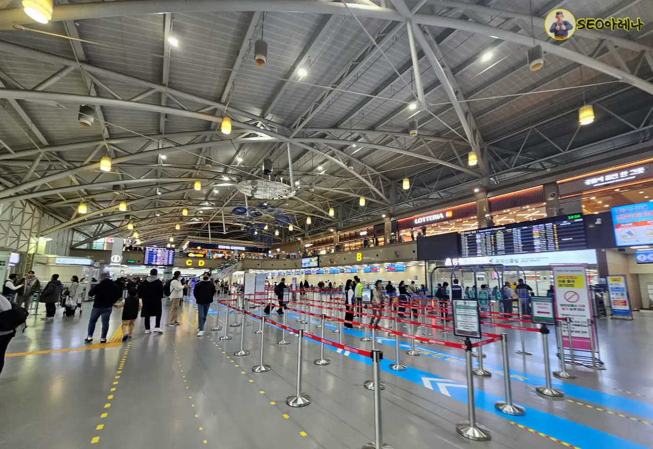 딱 3시간 전에 가면 이미 줄 서있는 분들이 많기 때문에, 3시간 30분 전부터 줄을 서서 빨리 입장하는 게 오히려 시간을 줄일 수 있을 거예요. 먼저 들어가셔야, 라운지도 빨리 이용할 수 있답니다.