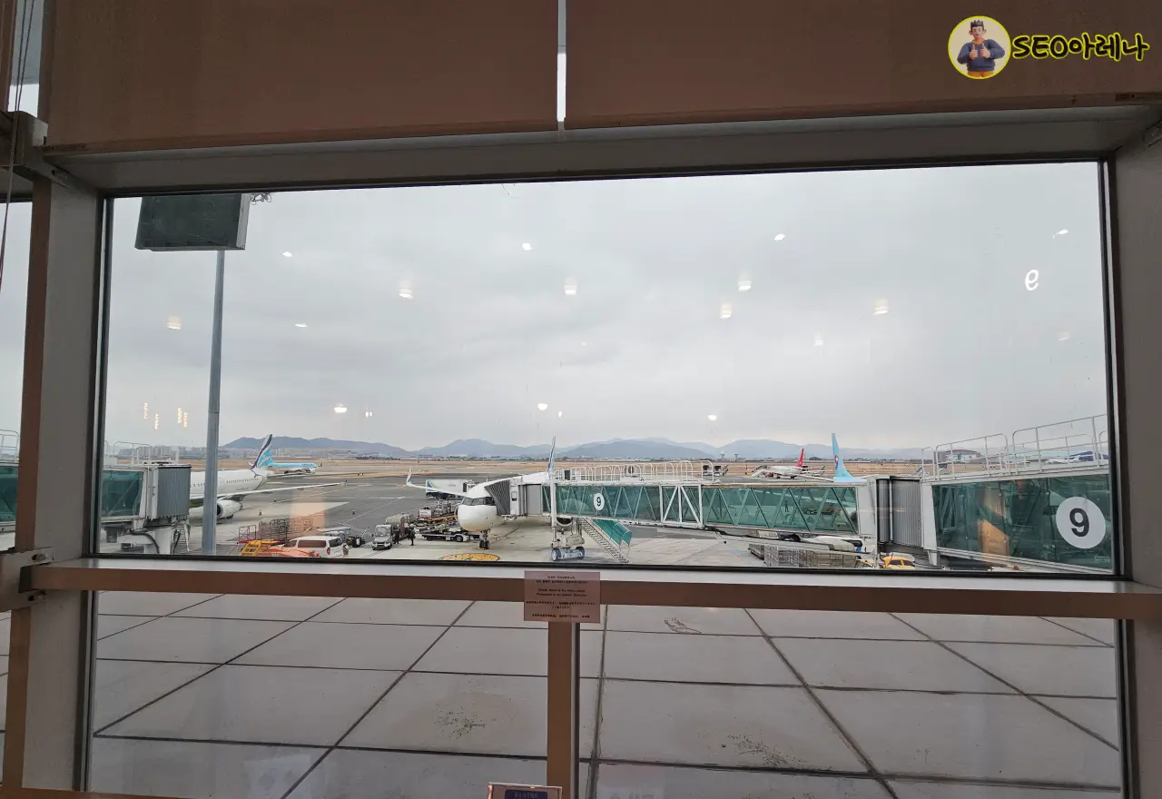 비행기를 좋아하는 분들은 좋아할 수도 있지만, 주변에 뭐 없는 공항이라 굳이 창가에 앉지 않아도 될 것 같아요.