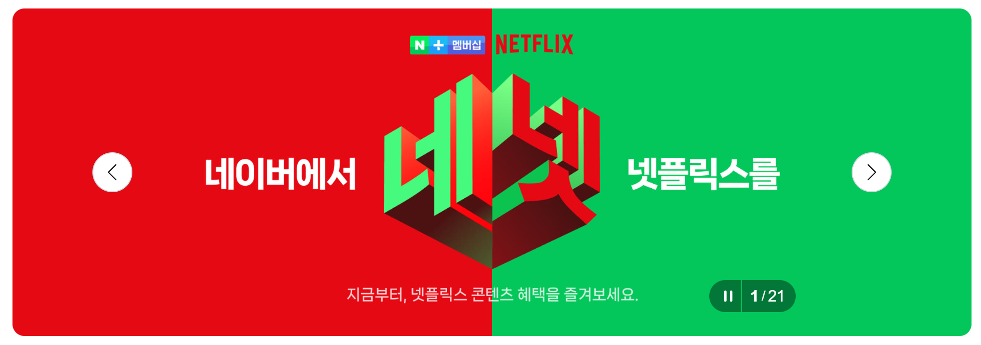쇼핑하러 들어갔다가 네이버에서 넷플릭스를 무료로 볼 수 있는 혜택을 준다고 하네요.