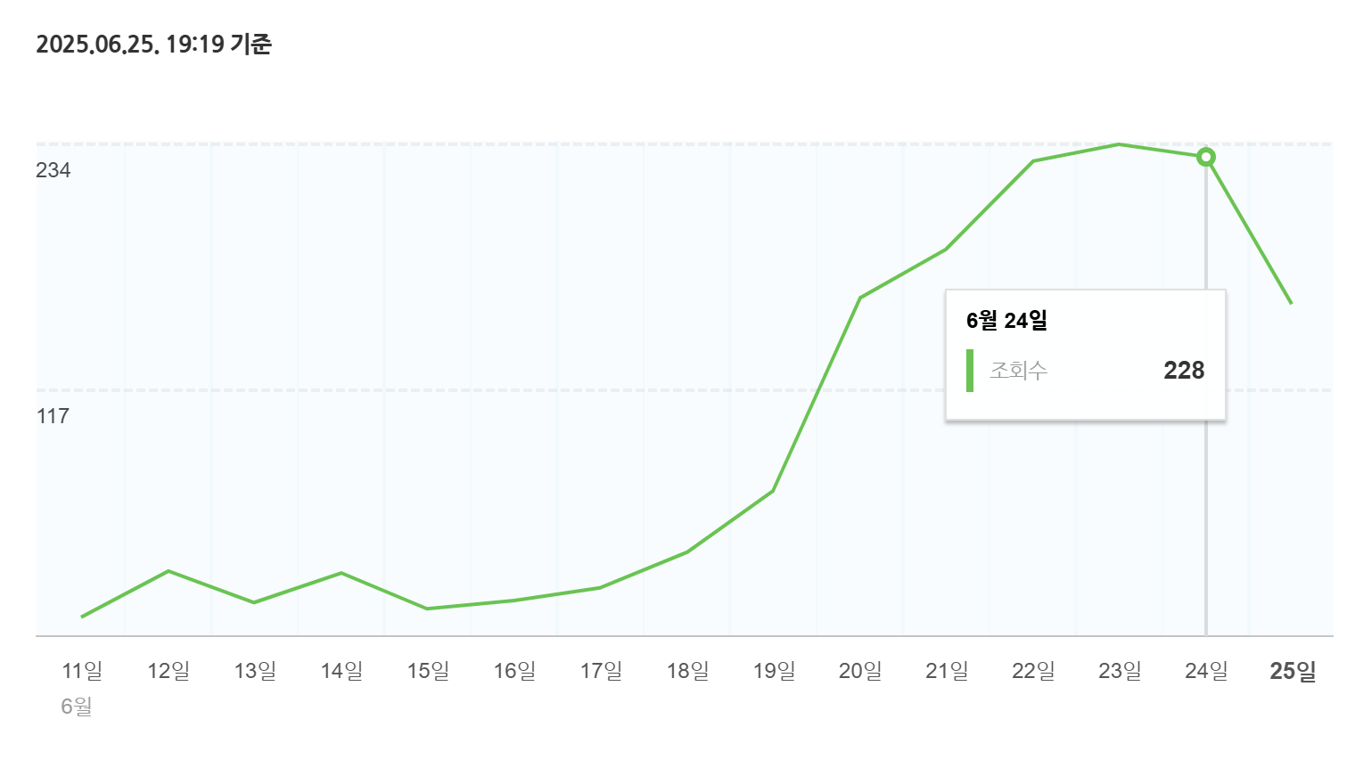 어쩌다 한두번 높은 조회수가 나올 수 있다보니, 어느 정도 기간의 평균 방문자수를 고려하는 듯 하다.