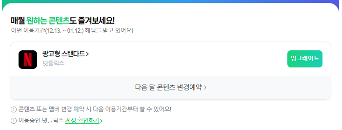 갑자기 넷플릭스 무료 혜택도 추가되어서, 기존에 이용하던 넷플릭스 구독을 해지하고 멤버십으로 연동해서 쓰고 있네요!