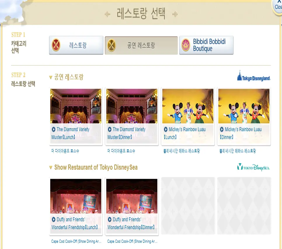 도쿄 디즈니랜드 공연 레스토랑 S석 예약 실패 후기: 더다이아몬드, 레인보우 루아우