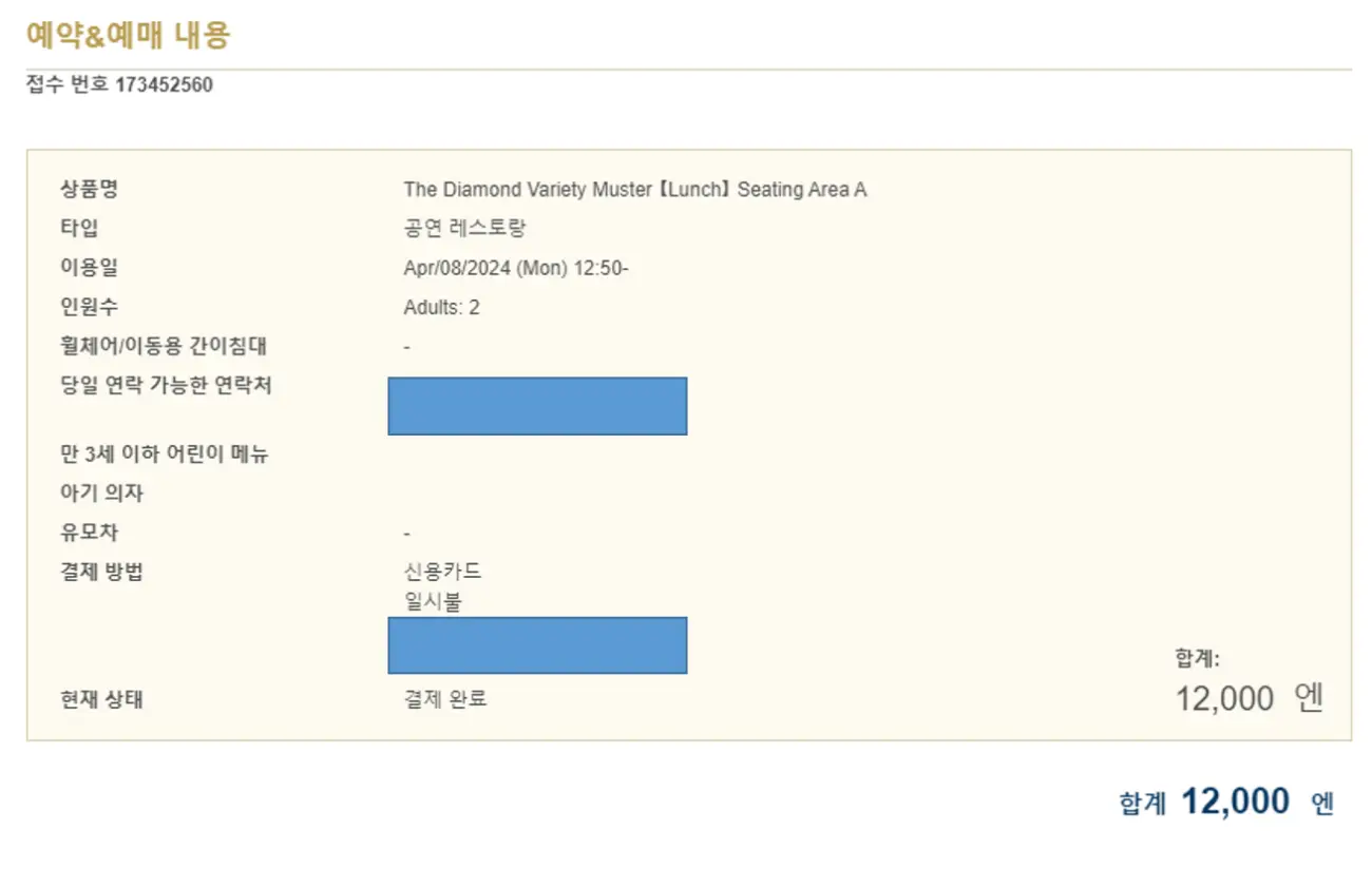 가격은 공연 레스토랑 A석과 동일하게 인당 6000엔.