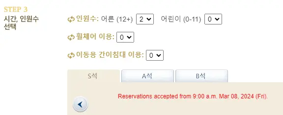 A석도 5분 내에 매진되니, S석 실패하시면 바로 클릭하시는게 좋아요!