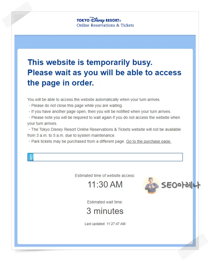 일본, 한국 뿐만 아니라 도쿄 디즈니에 방문하려고 하는 분들이 숙박, 레스토랑, 입장권을 구매하기 위해 접속하는 분들이 많아서겠죠.