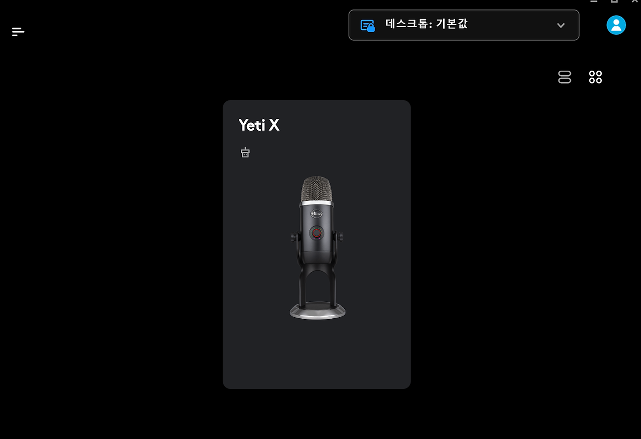 설치하고 블루예티X 마이크를 PC에 연결하면 자동으로 GHUB에서 마이크를 인식합니다.