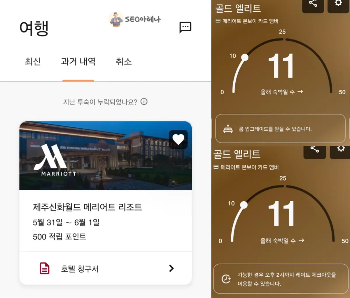 고급형 신용카드라 그런지, 바로 메리어트 골드엘리트 등급으로 올려준다.