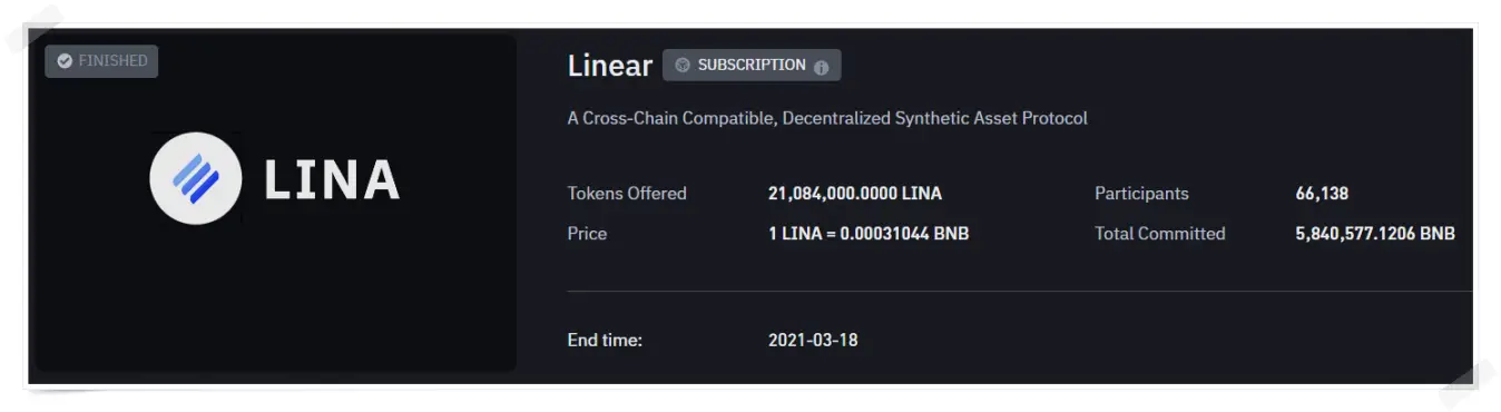 대표적으로 리니어 파이낸스(LINA).