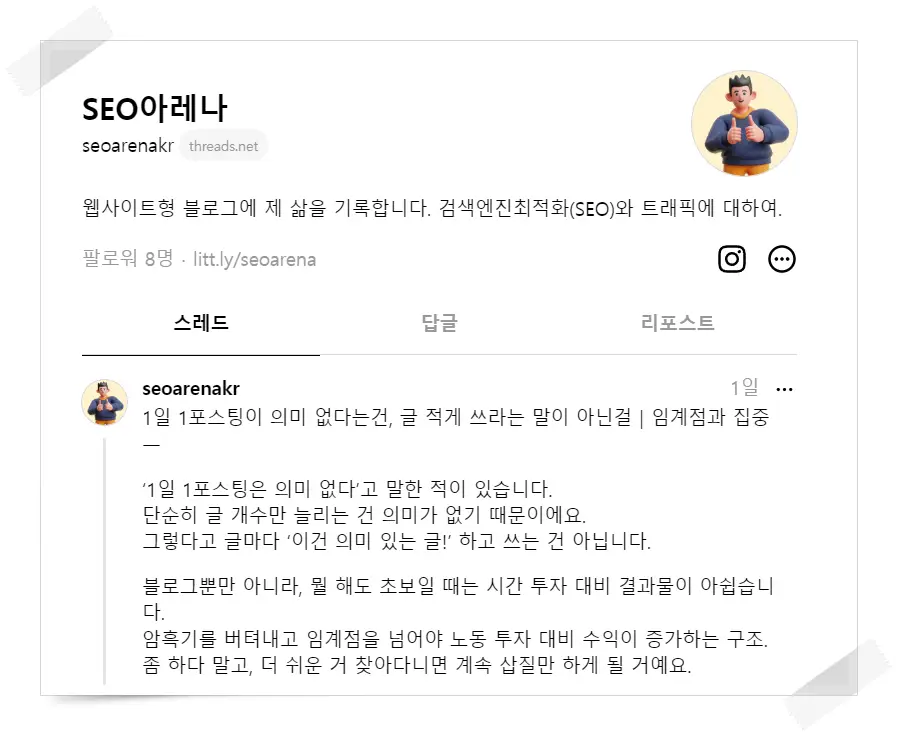 Threads의 SEO아레나(@seoarenakr)님