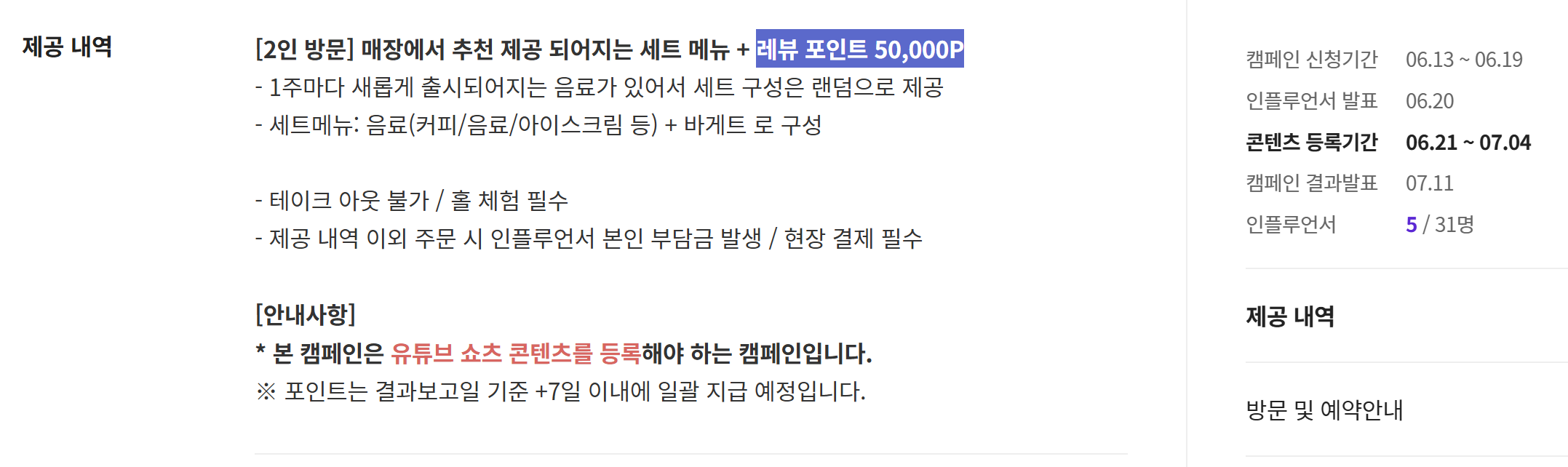 대형채널은 카페 음식제공(2~3만원)에 5만원 정도 수익에 반응하지 않을테니, 작은 개인 채널들이 설 자리가 충분히 있다.