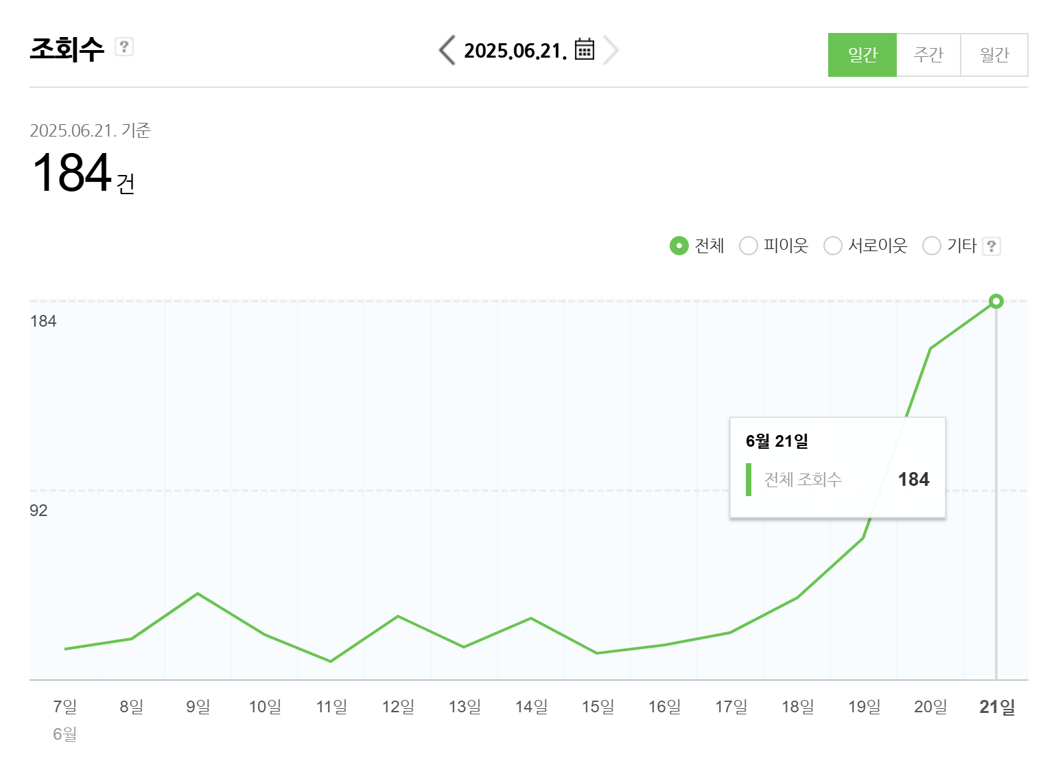 하지만 네이버가 정책을 변경하면서, 방문자 그래프를 눈에 보이게 표시해야만 정보가 공유된다고 한다.