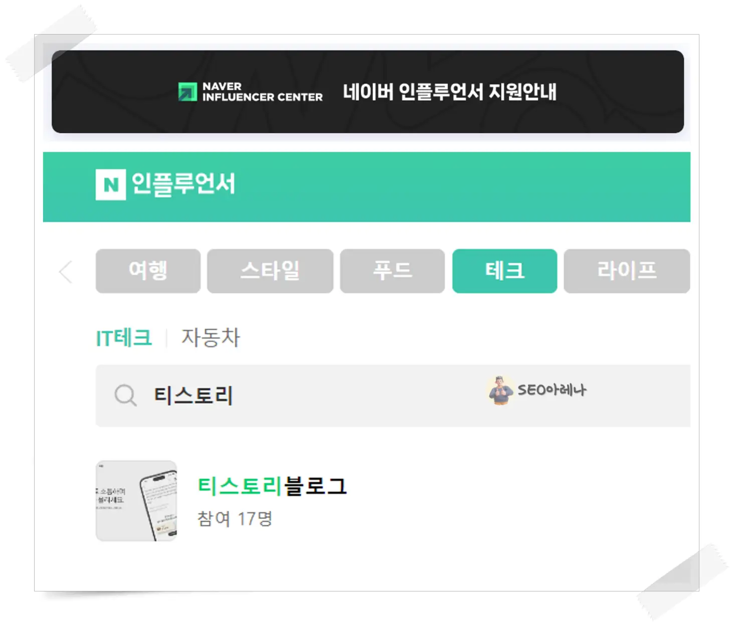 네이버가 경쟁자인 다음의 티스토리 블로그를 주력으로 하는 크리에이터를 인플루언서로 선정해줄 지 모르겠지만, 가능성은 있겠다고 판단했습니다.