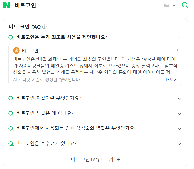 네이버에 검색해 보면, AI가 관련 정보를 찾아서 간략하게 제시하고 출처까지 같이 노출시켜 주는 방식으로 진화하고 있습니다.