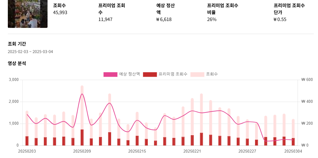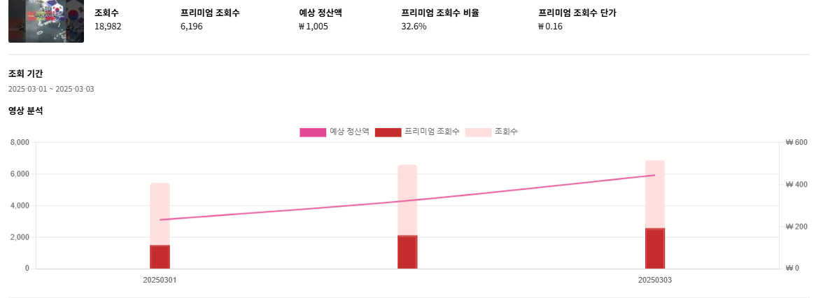 업체마다 다르겠지만, 불과 올해 2월까지만 해도 보통 프리미엄 조회수 기준 음원 단가가 0.4~0.7 정도 나왔다.