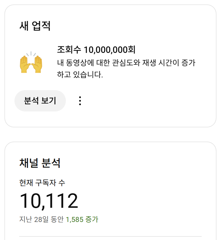 1년 이내에 4천 시간은 꾸준히 하면 상대적으로 가능성이 높지만, 3달 이내에 1000만회를 달성하는 건 정말 쉽지 않은 일이다.