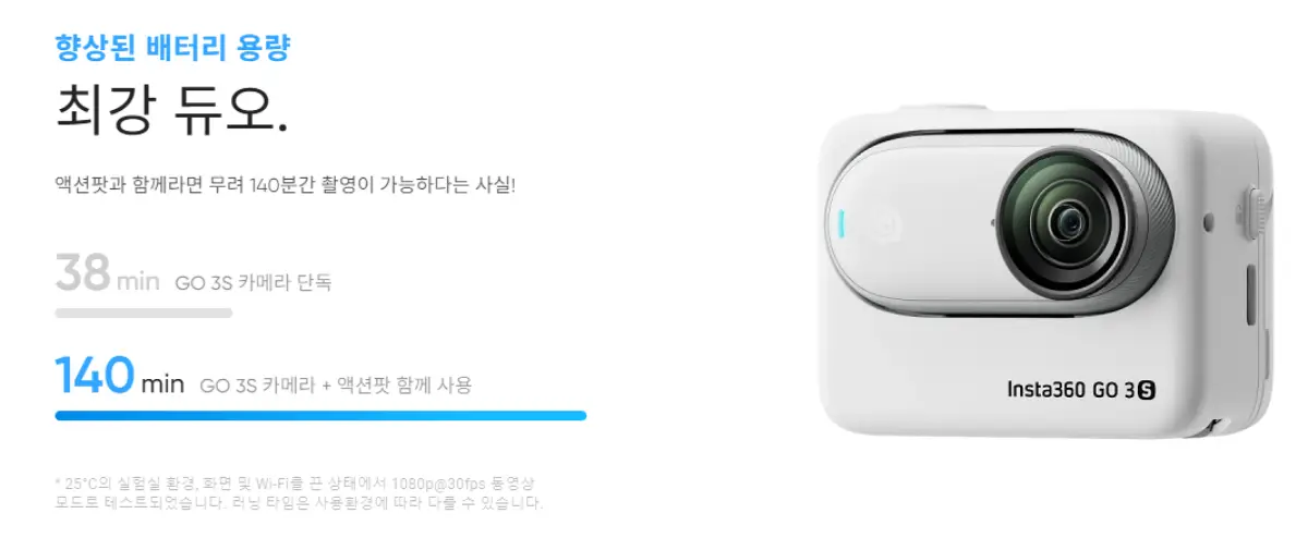 | 배터리 용량 | GO 3 / 3S 공통 GO 3S: 310mAh 액션팟: 1270mAh |