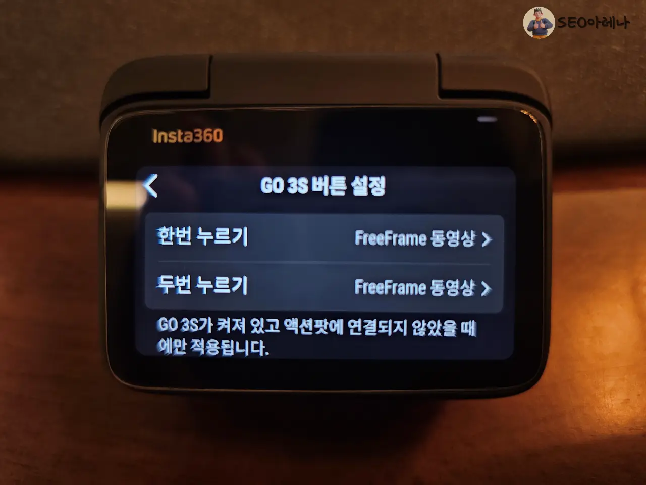 Freeframe 모드로만 촬영하실 분들은, [설정-GO 3S 버튼 설정]에 들어가시고,