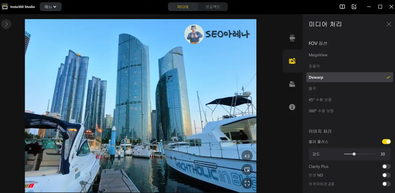 인스타360 액션캠 동영상 촬영모드 5가지 분석: Megaview, Dewarp, 수평잠금