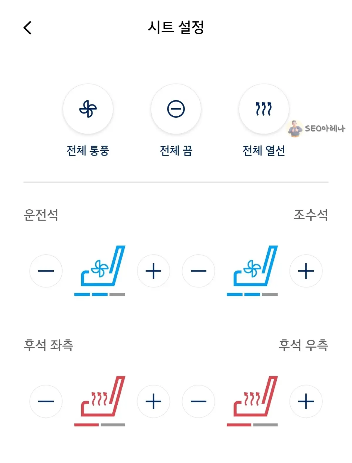 아무래도 무더운 날씨에 밖에 있다가 통풍시트를 미리 켜놓은 차량에 탑승하면 훨씬 빨리 더위를 식힐 수 있으니까요.