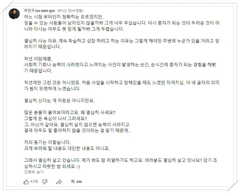 이런 게 크리에이터의 인간미가 아닐까..