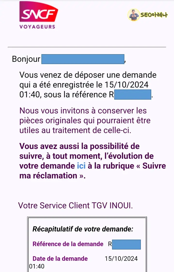 | 파리 기차 TGV, TER 연착, 취소됐을 때 조치사항, 티켓 추가 구매를 추천하지 않는 이유 (2) | 2024.10.27 |