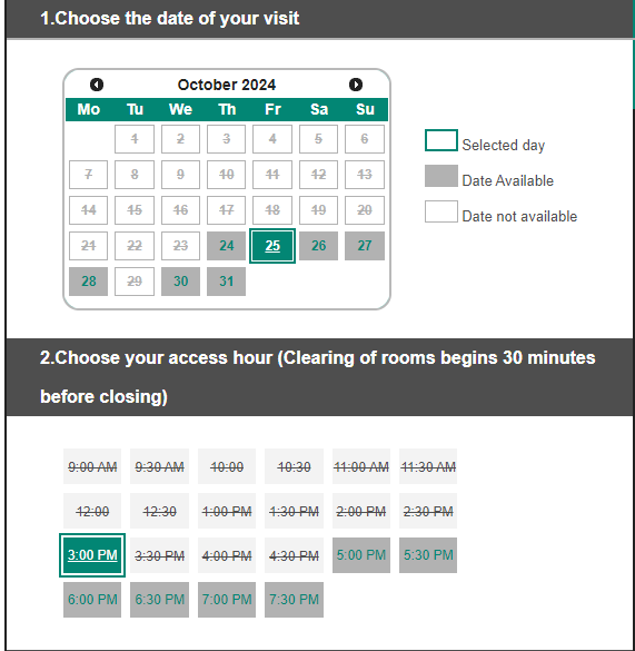 오픈 시간인 오전 9시~10시에 개별 예약을 하려면 적어도 2주일 전에는 미리 예약을 해야해요.