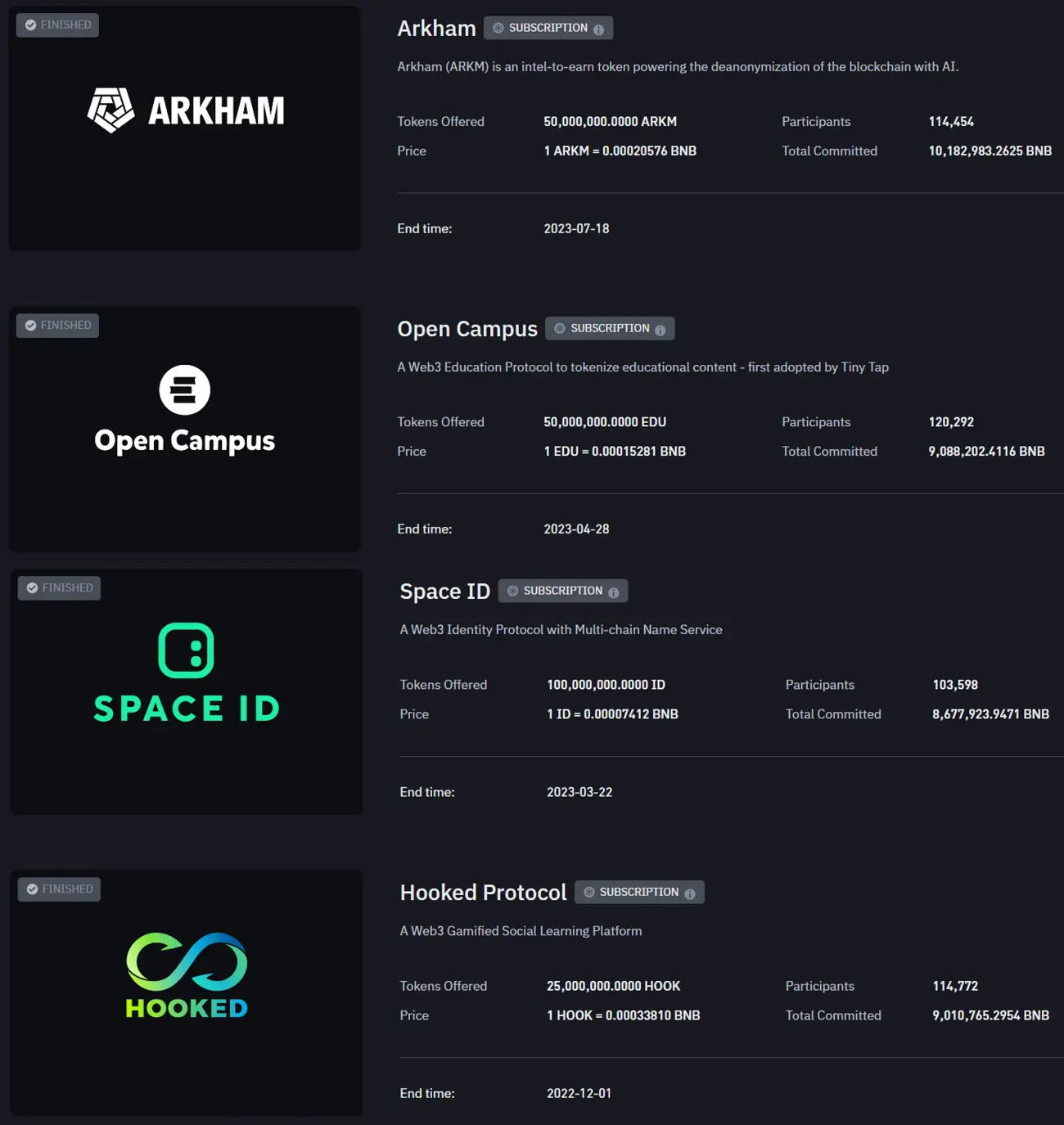 오늘은 2023년에 발행된 바이낸스 런치패드 코인 4개를 가볍게 보려고 한다.