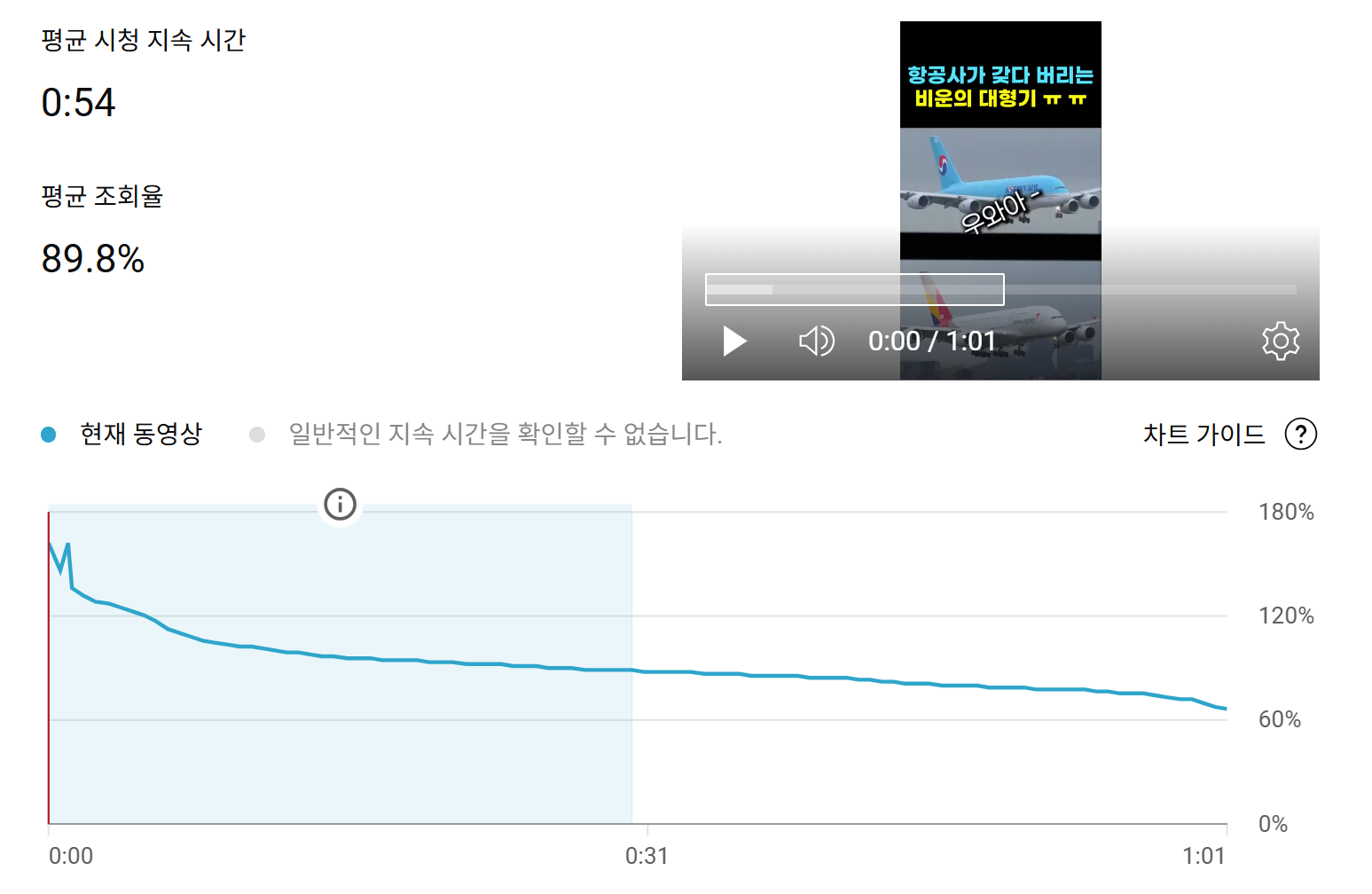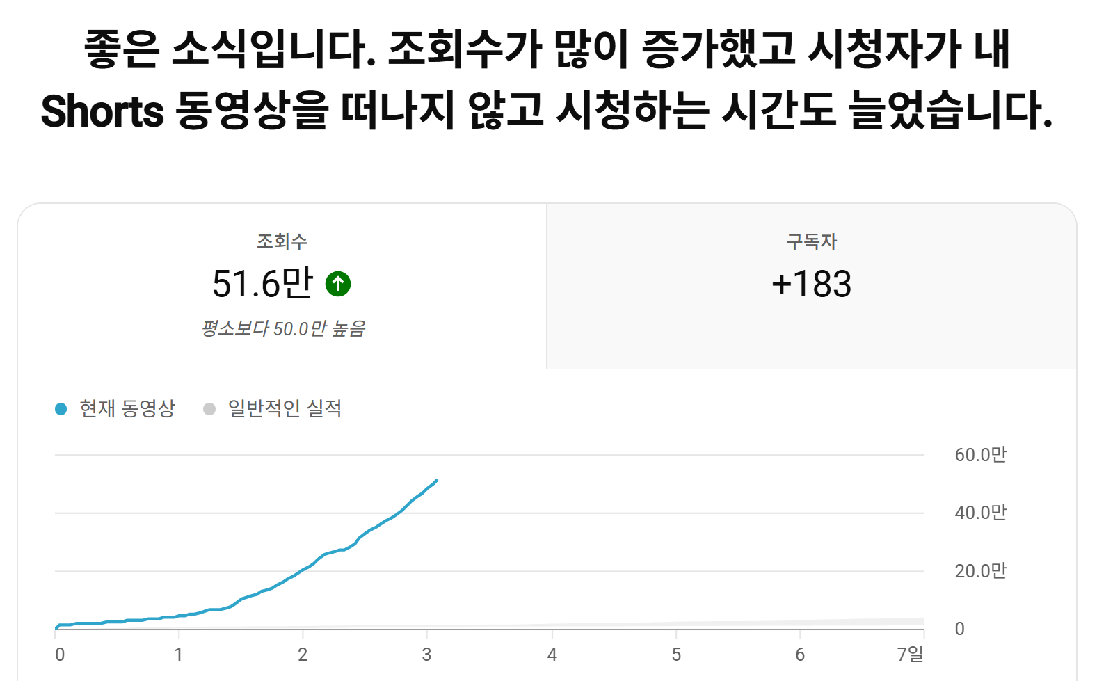 실제로 요즘 잘 되는 채널을 보면 보통 40초 이상의 쇼츠를 많이 만든다. 물론 단순히 길게 만든다고 해서 다 잘되는 건 아니다. 30초 이상 보게만드는 것 그 자체가 쉽지 않기에.